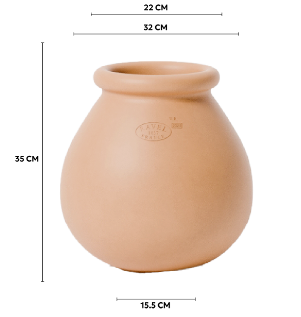 She is the matron of the gardens! Ventrue, round and warm, she embodies Provence. Molded by hand in our factory in Aubagne in Provence with french terracotta, it is an essential element by a pool, in an alcove or on a terrace. Formerly used as food container, today its is the perfect receptacle for falling or climbing flowering plants. It is advisable, when choosing a jar higher than 50 cm, to also buy an inner pot that will be placed on the collar. This "jar inside" will have the advantage of reducing the amount of soil to bring, and to easily put your plant in a shelter for the winter. • For jars of 60cm (JAR P60) use inside of jar of 25cm (INT J25). • For jars 70 and 80cm (JAR P70 and JAR P80) use inside of jar of 35cm (INT 35).