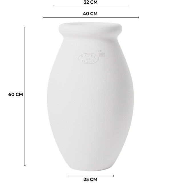 This chic jar, a little aristocratic is molded by hand in our workshops in Aubagne in Provence with a natural clay. Its narrow line fits perfectly on a staircase, in the corner of a terrace or in the alcove of a garden. This jar prefers flowering or climbing flowers rather than shrubs.