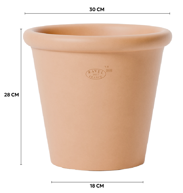 Ce vase sobre et élégant est fabriqué à la main dans nos ateliers en Provence avec une argile 100% française. De 25 à 100 cm de diamètre, il s'harmonise avec tous les styles de décors. Il est parfait pour les agrumes, les oliviers, les palmiers et même les grimpants comme les jasmins.