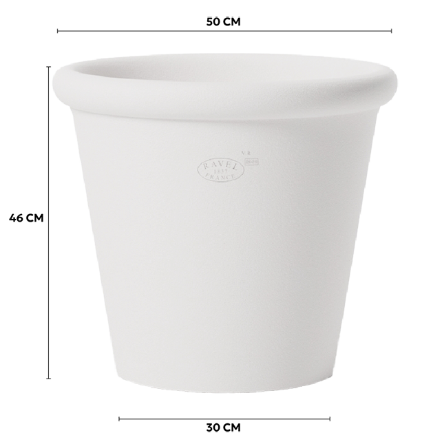 Ce vase sobre et élégant est fabriqué à la main dans nos ateliers en Provence avec une argile 100% française. De 25 à 100 cm de diamètre, il s'harmonise avec tous les styles de décors. Il est parfait pour les agrumes, les oliviers, les palmiers et même les grimpants comme les jasmins.