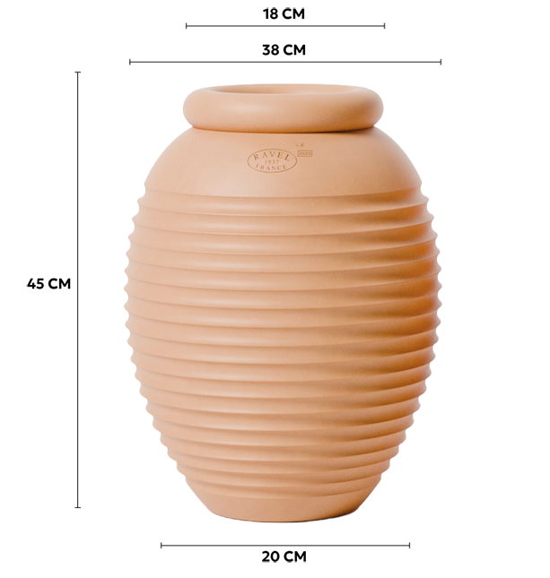 Un esprit méditerranéen et antique pour cette jarre qui existe en deux tailles. Contemporaine sur une terrasse toute blanche en bord de mer, ou éternelle dans un esprit plus campagne… Dans les jarres moulées à la main dans nos ateliers d’Aubagne, il faut imaginer des fleurs, des cactées ou des grimpants.