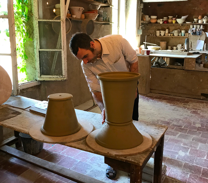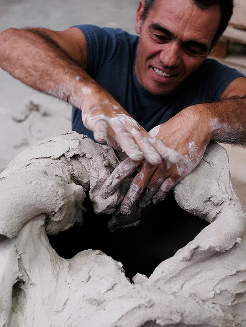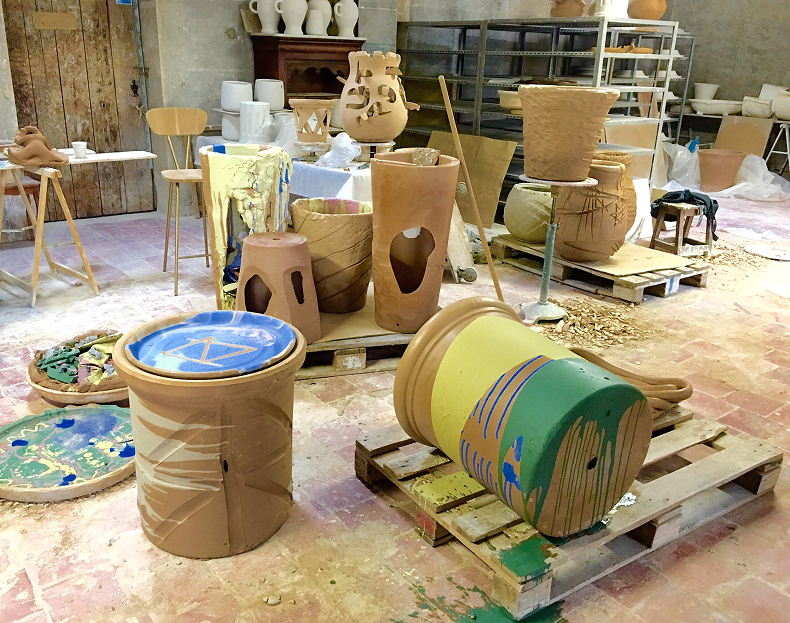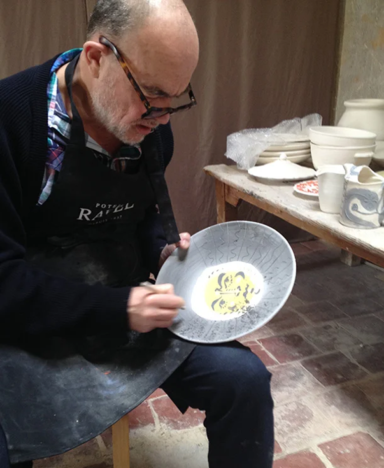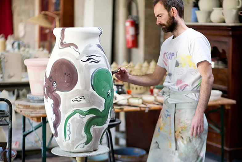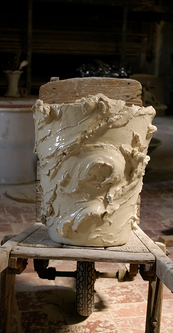 Quand il vient dans nos ateliers pour la réalisation des ses jarres monumentales, ses fresques murales magnifiques, il nous apprend à bousculer nos codes d’artisan.