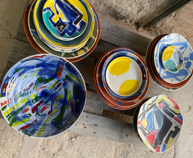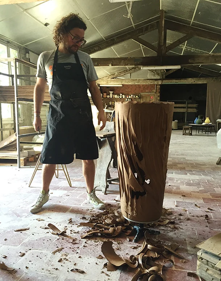 Il a d'abord souhaité intervenir sur les formes emblématiques de la Fabrique puis sur quelques autres pièces spécialement créées et réalisées à quatre mains avec notre potier Thierry Lachaume.