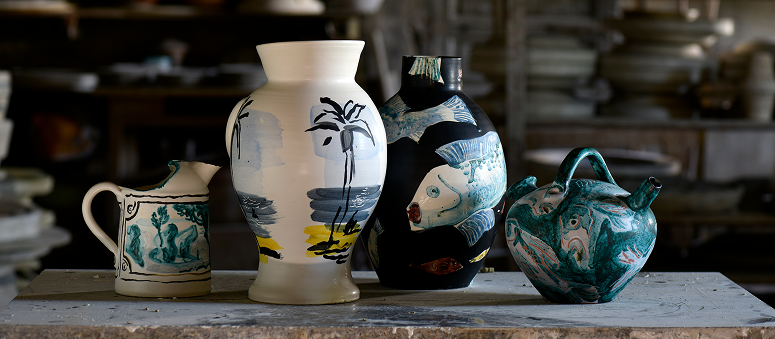 En Avril 2015, en résidence à la Poterie Ravel à Aubagne, Mr Christian Lacroix a dessiné et signé, la collection de céramiques uniques, « Mythologie ».