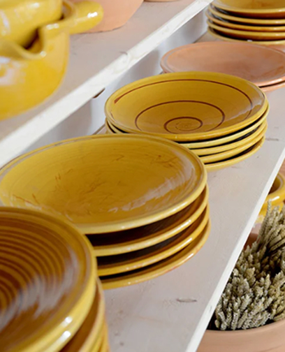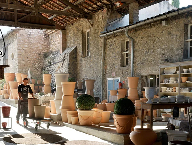 Vous y retrouverez l’ensemble de la production artisanale de la Maison : vases de jardin en terre cuite, poteries décoratives, vaisselle raffinée issue de notre collection d’art de la table. Chaque pièce est façonnée localement dans les ateliers situés juste à côté.